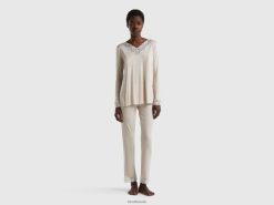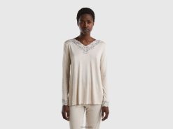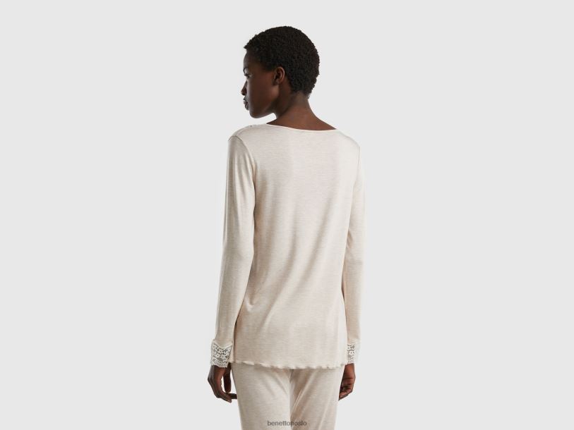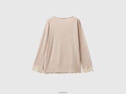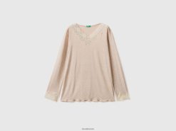 lysegrå Benetton kvinner topp med blondedetaljer 20TRB4299