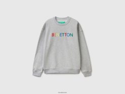 lysegrå Benetton menn genser med rund hals og logotrykk 20TRB4516