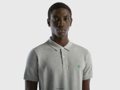 lysegrå Benetton menn mørkegrå polo med normal passform 20TRB1408