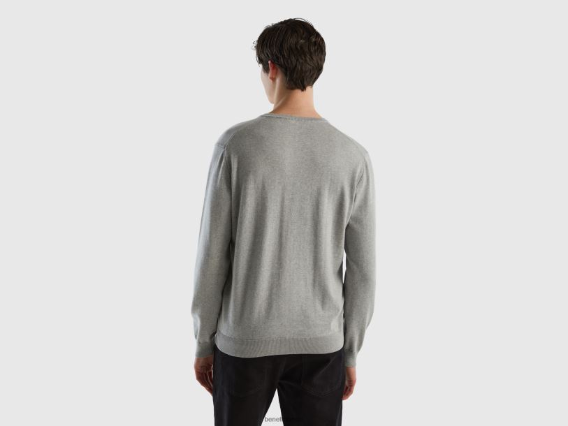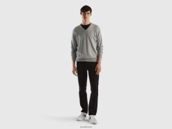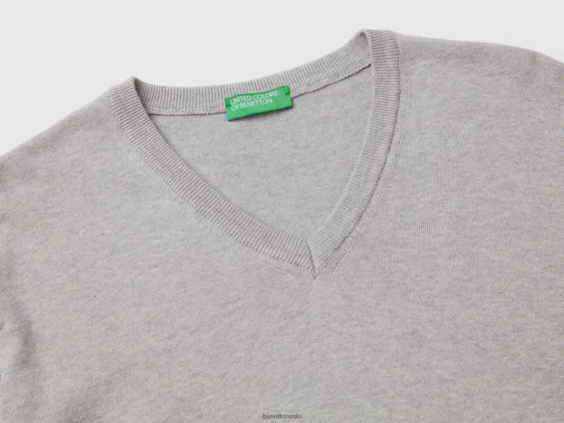 lysegrå Benetton menn v-halset genser i ren bomull 20TRB4418