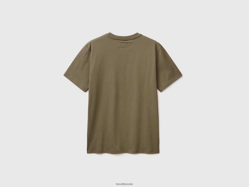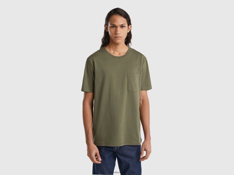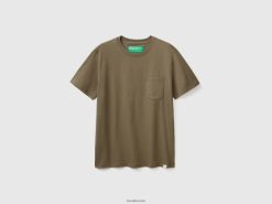 militærgrønt Benetton menn T-skjorte i 100 % bomull med lomme 20TRB4487