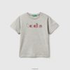 mørk grønn Benetton barn t-skjorte med trykk og lapper 20TRB2156