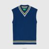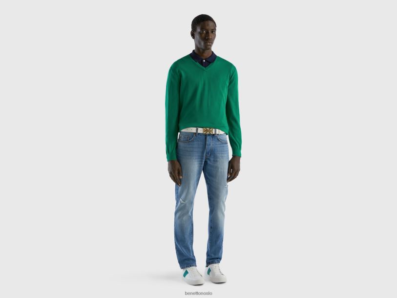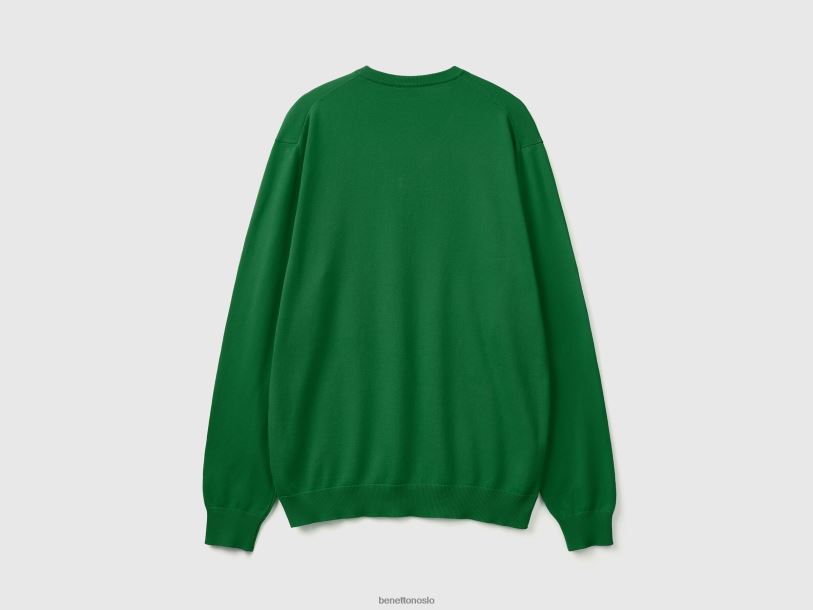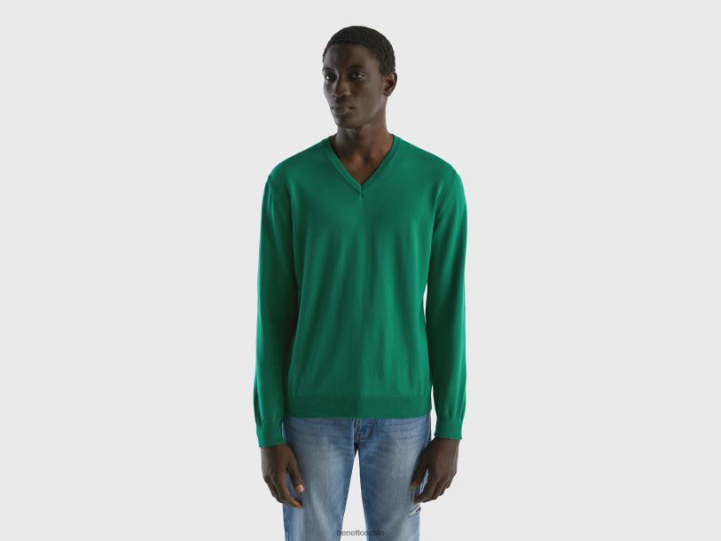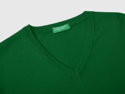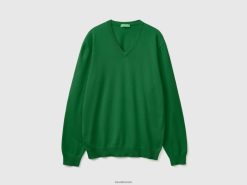 mørk grønn Benetton menn v-halset genser i ren bomull 20TRB4364