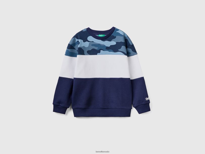 mørke blå Benetton barn colour block sweatshirt med kamuflasjetrykk 20TRB4886