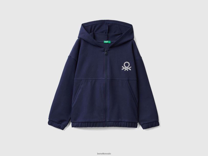 mørke blå Benetton barn hettegenser med glidelås og brodert logo 20TRB2542