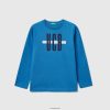 mørke blå Benetton barn T-skjorte i 100 % bomull med logo 20TRB1685