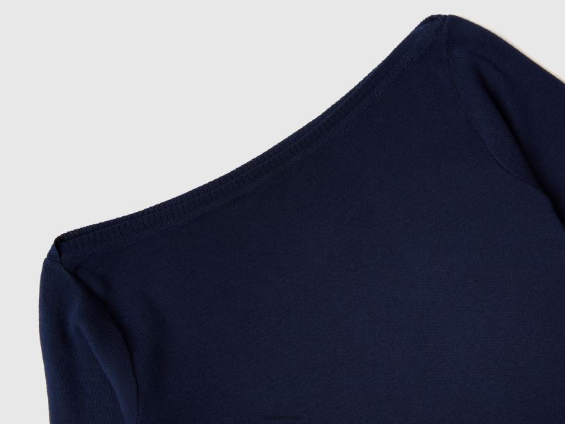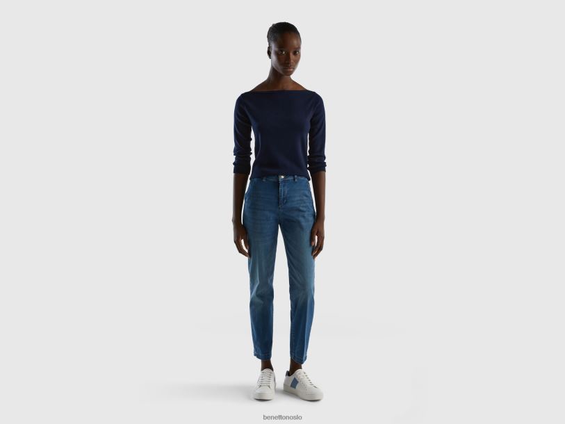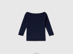 mørke blå Benetton kvinner 100% bomullsgenser med båthals 20TRB173
