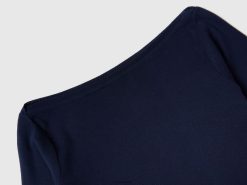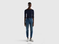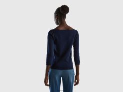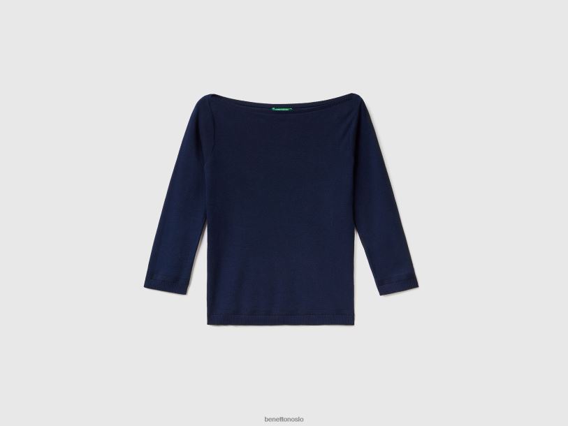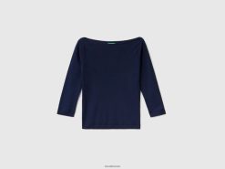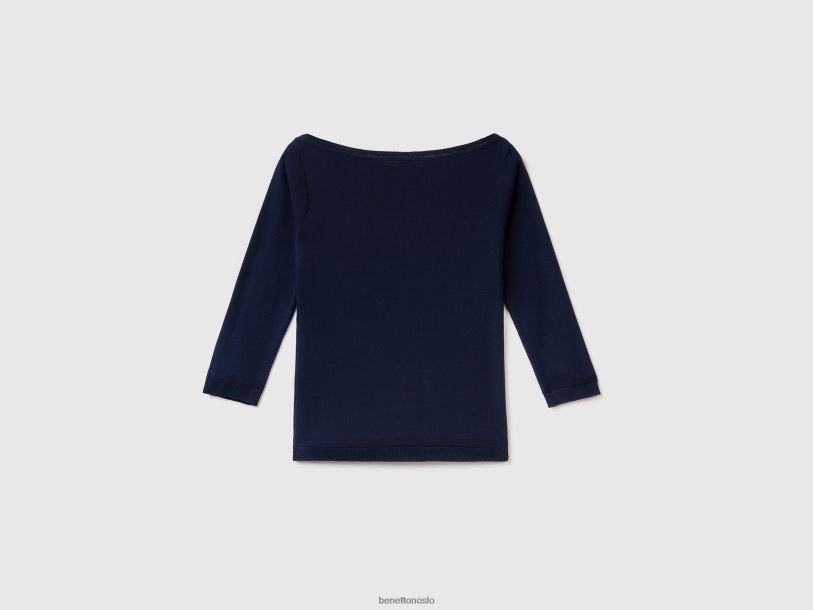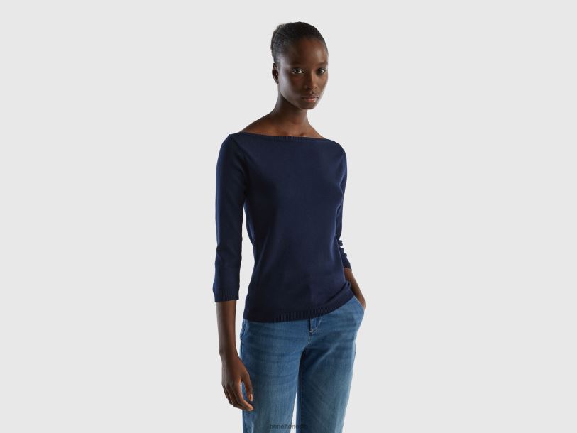 mørke blå Benetton kvinner 100% bomullsgenser med båthals 20TRB3645