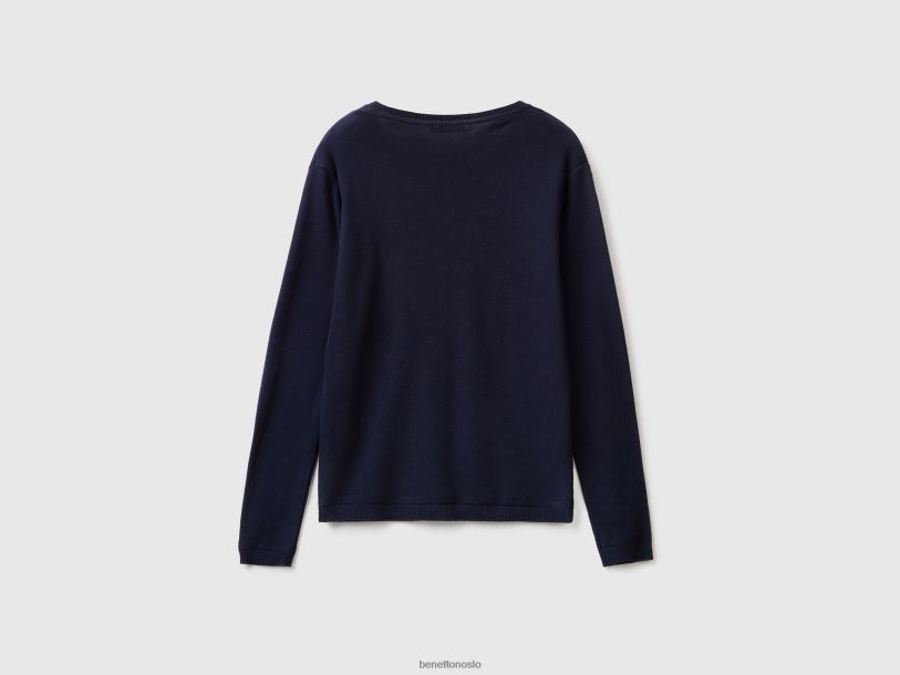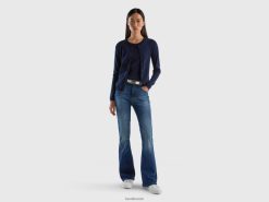 mørke blå Benetton kvinner cardigan med rund hals i ren bomull 20TRB3652