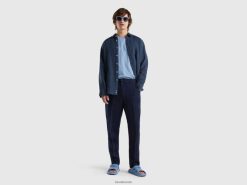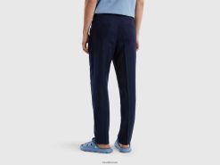 mørke blå Benetton kvinner chinos i rent lin 20TRB1464