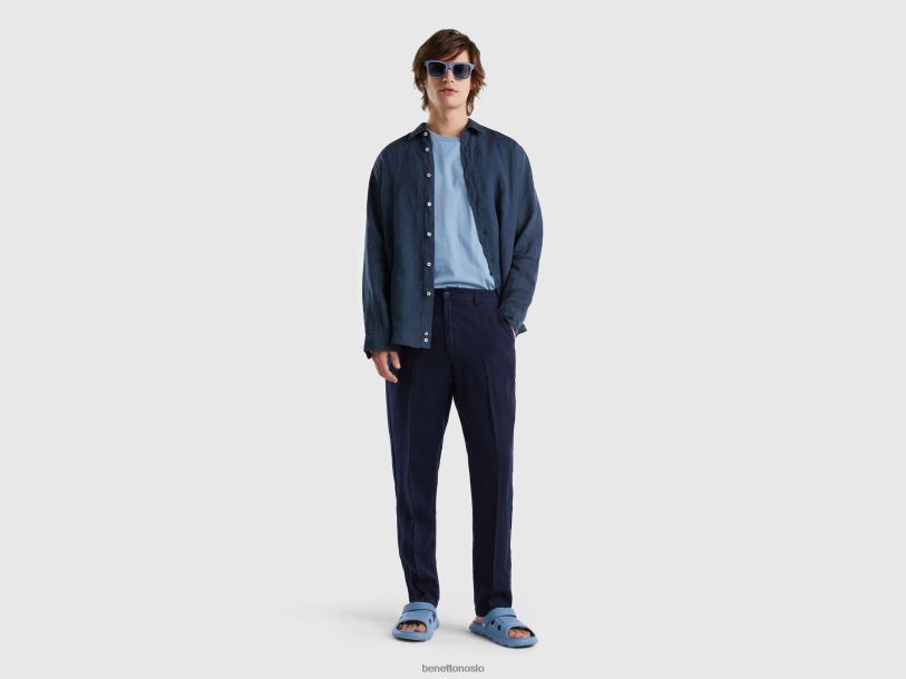 mørke blå Benetton kvinner chinos i rent lin 20TRB4649
