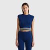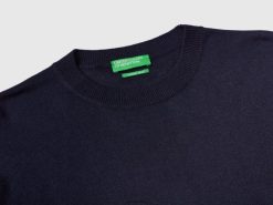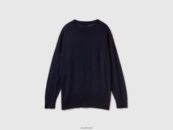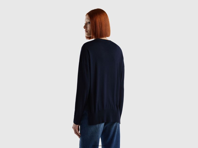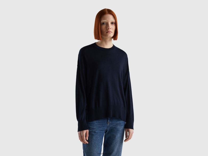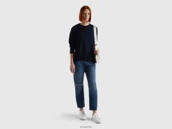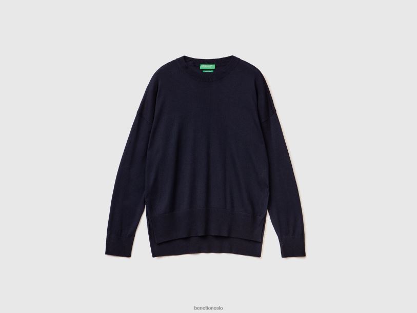 mørke blå Benetton kvinner genser i viskoseblanding med splitt 20TRB3566
