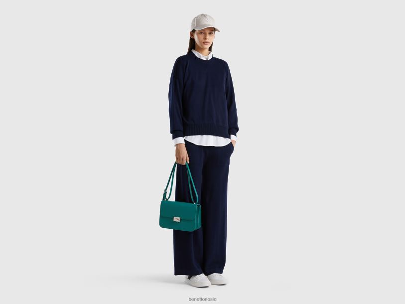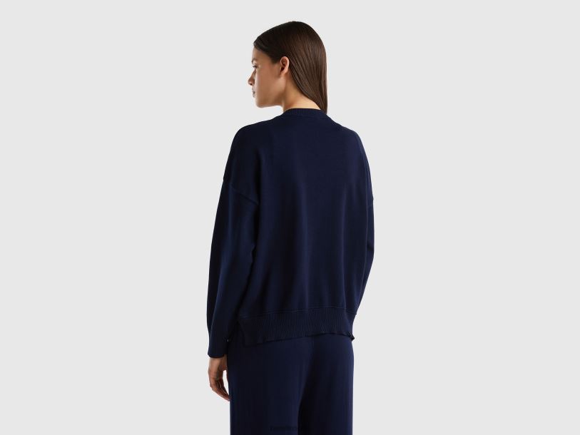 mørke blå Benetton kvinner genser med rund hals i trikotbomull 20TRB3616