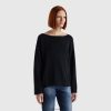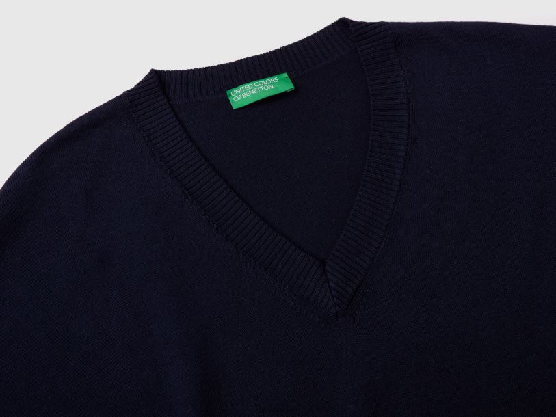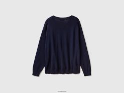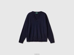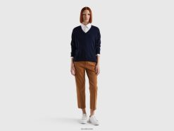 mørke blå Benetton kvinner genser med v-hals 20TRB3503