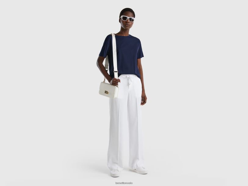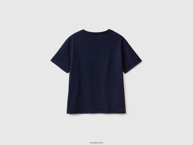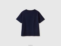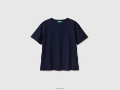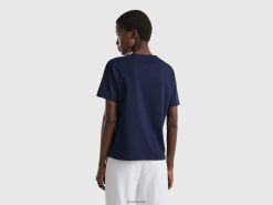 mørke blå Benetton kvinner kortermet t-skjorte i 100 % bomull 20TRB313