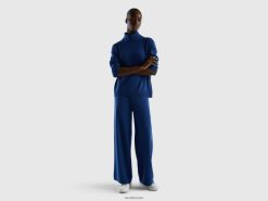 mørke blå Benetton kvinner midnattsblå turtleneck i ull- og kashmirblanding 20TRB3619