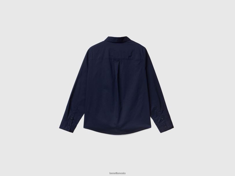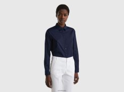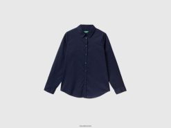 mørke blå Benetton kvinner skjorte i lett bomull 20TRB4002