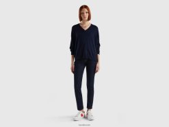 mørke blå Benetton kvinner slim fit jeans i stretchbomull 20TRB4159