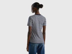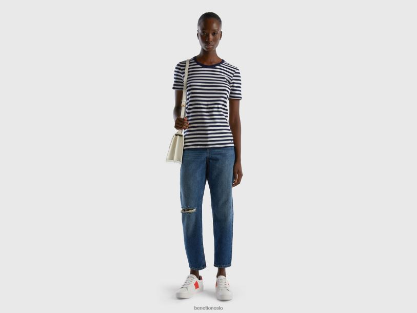 mørke blå Benetton kvinner stripete t-skjorte med rund hals 20TRB471