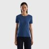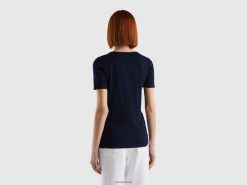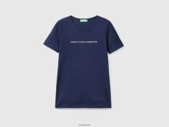 mørke blå Benetton kvinner t-skjorte i 100 % bomull med glittertrykk logo 20TRB469