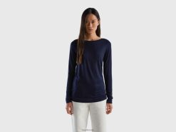 mørke blå Benetton kvinner t-skjorte i bærekraftig stretch viskose 20TRB3845