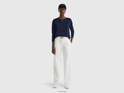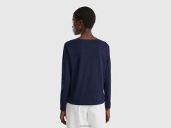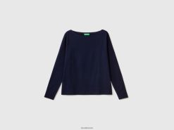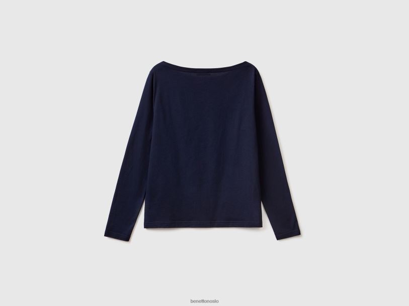 mørke blå Benetton kvinner t-skjorte med båthals i 100 % bomull 20TRB349