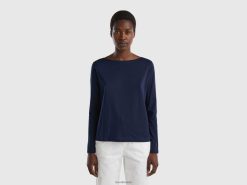 mørke blå Benetton kvinner t-skjorte med båthals i 100 % bomull 20TRB3872