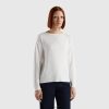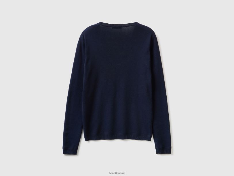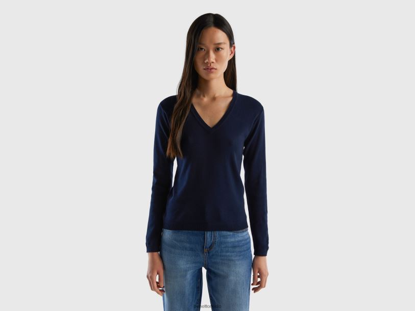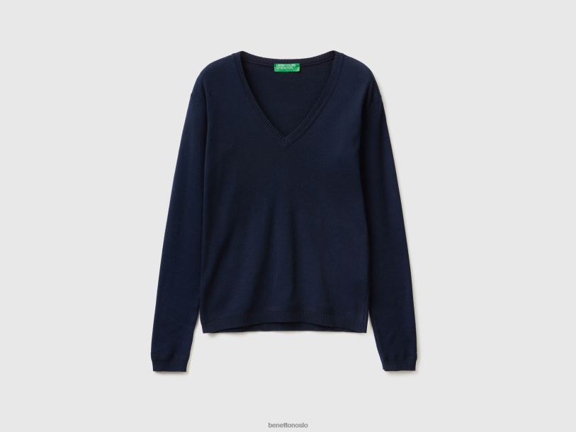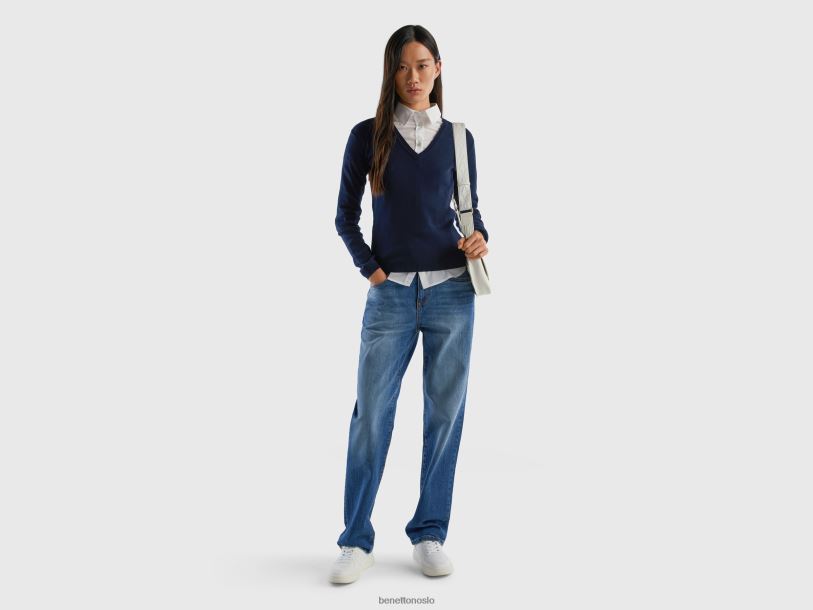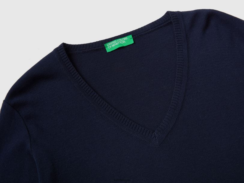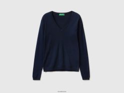 mørke blå Benetton kvinner v-halset genser i ren bomull 20TRB148