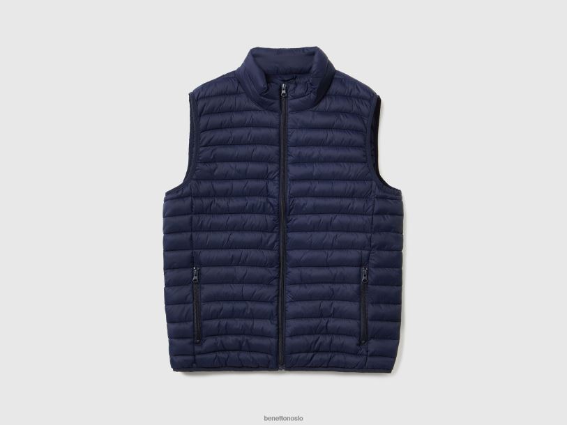 mørke blå Benetton menn ermeløs pufferjakke med resirkulert vatt 20TRB1192
