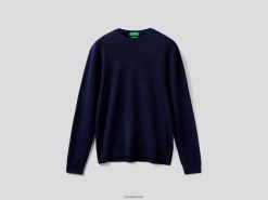 mørke blå Benetton menn mørkeblå genser med rund hals i ren merinoull 20TRB6041