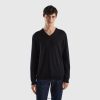 mørke blå Benetton menn mørkeblå v-halsgenser i ren merinoull 20TRB1171