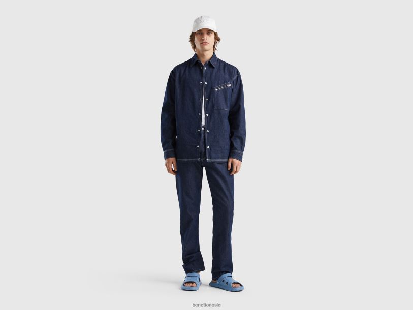mørke blå Benetton menn oversized skjorte i chambray 20TRB4547