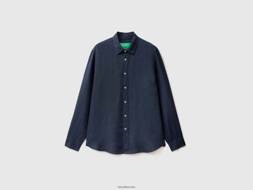 mørke blå Benetton menn skjorte i rent lin 20TRB1371