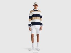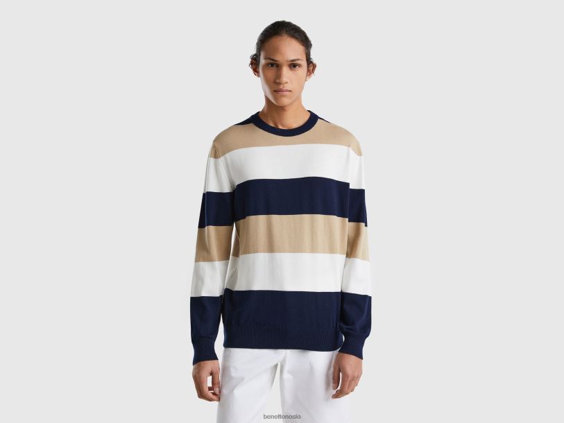 mørke blå Benetton menn stripet genser i 100 % bomull 20TRB1173