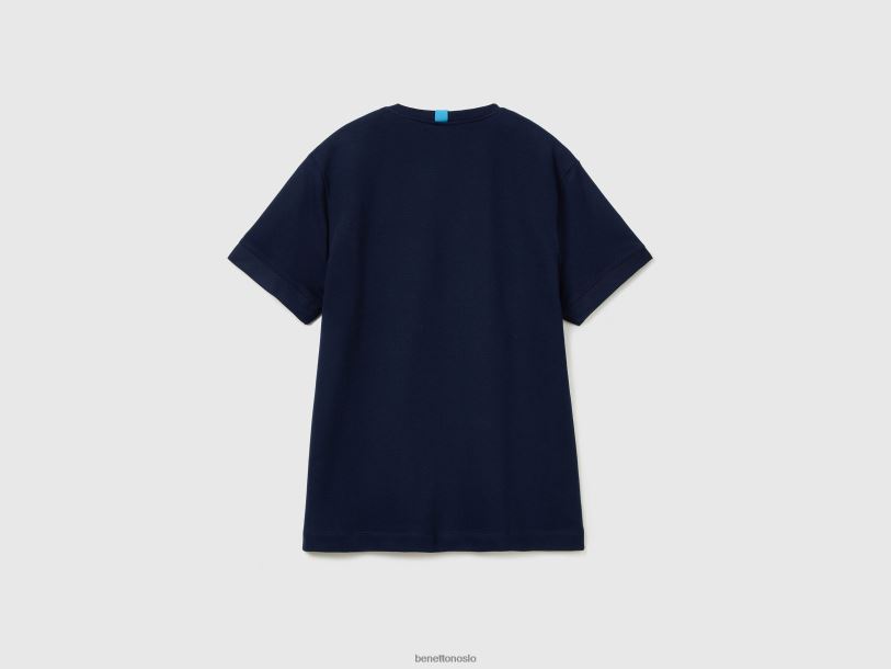 mørke blå Benetton menn T-skjorte i 100 % bomull med lomme 20TRB1250