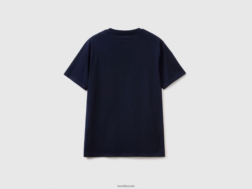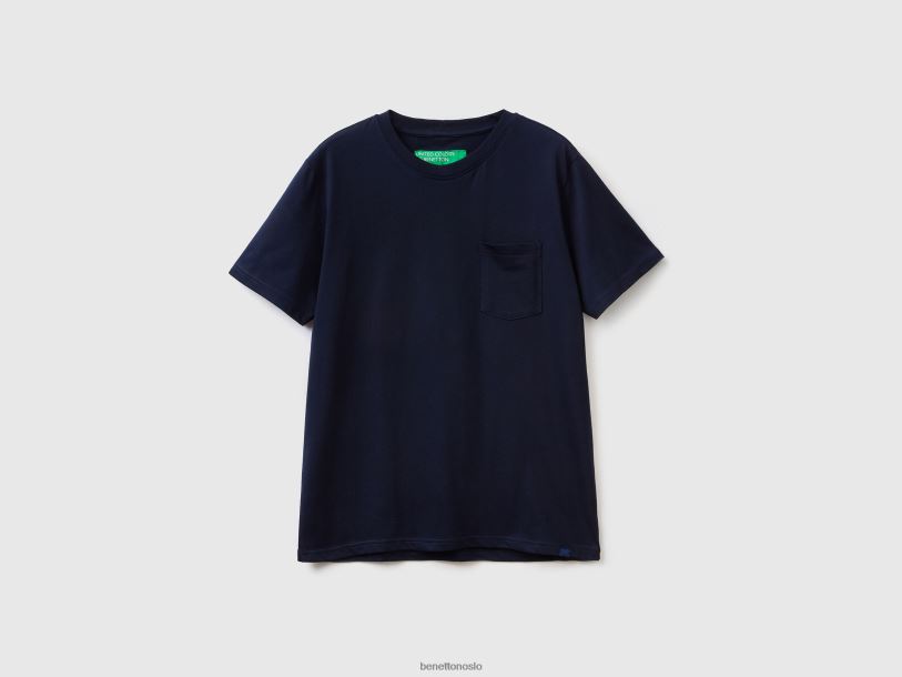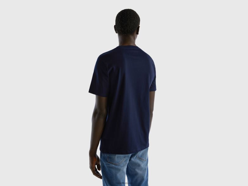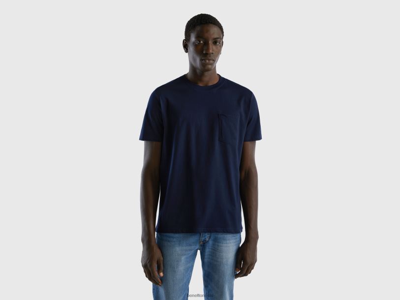 mørke blå Benetton menn T-skjorte i 100 % bomull med lomme 20TRB1302