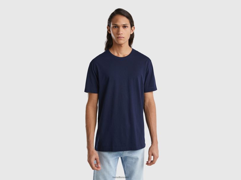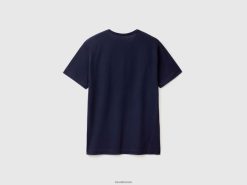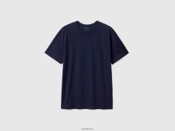 mørke blå Benetton menn t-skjorte i bomull og kashmirblanding 20TRB1263