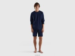 mørke blå Benetton menn t-skjorte i lett bomull 20TRB4697