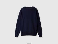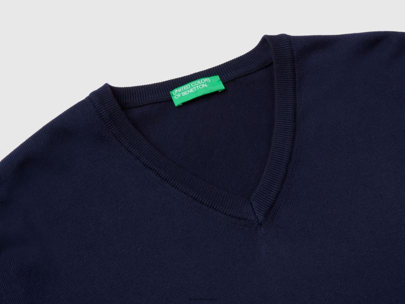 mørke blå Benetton menn v-halset genser i ren bomull 20TRB4417