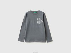 mørkegrå Benetton barn langermet t-skjorte med trykk 20TRB1751