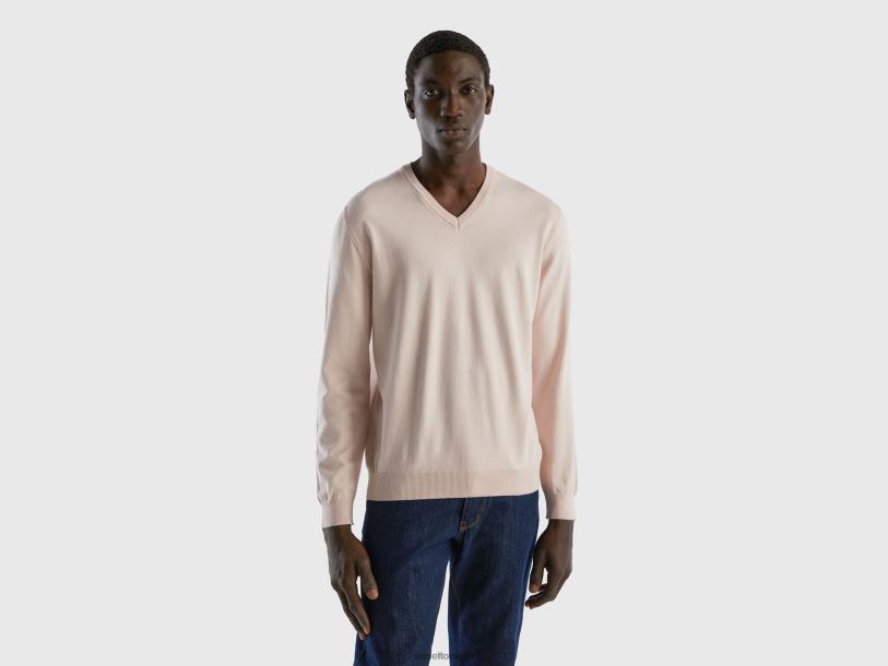 myk rosa Benetton menn v-halset genser i ren bomull 20TRB4394