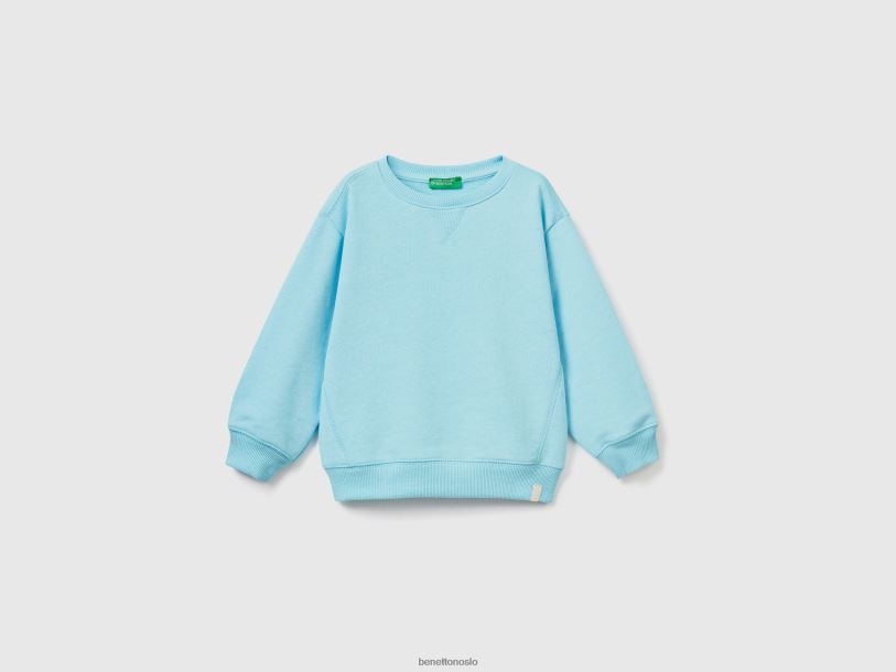 neon himmelblå Benetton barn genser med rund hals i resirkulert stoff 20TRB5095