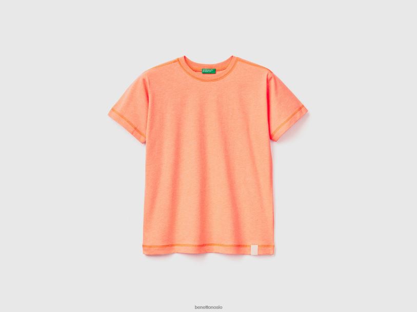 neon oransje Benetton barn T-skjorte med rund hals i resirkulert stoff 20TRB1655