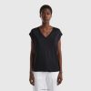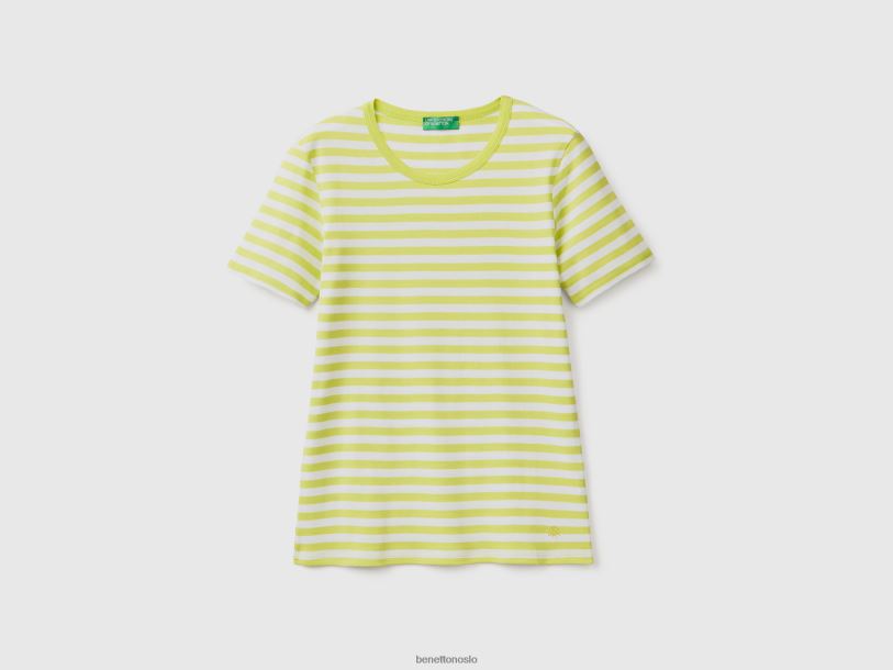 neongrønn Benetton kvinner stripete t-skjorte med rund hals 20TRB410