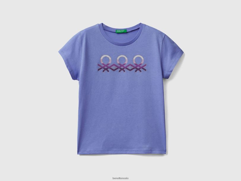 periwinkle Benetton barn t-skjorte med glitrende logo i økologisk bomull 20TRB5212