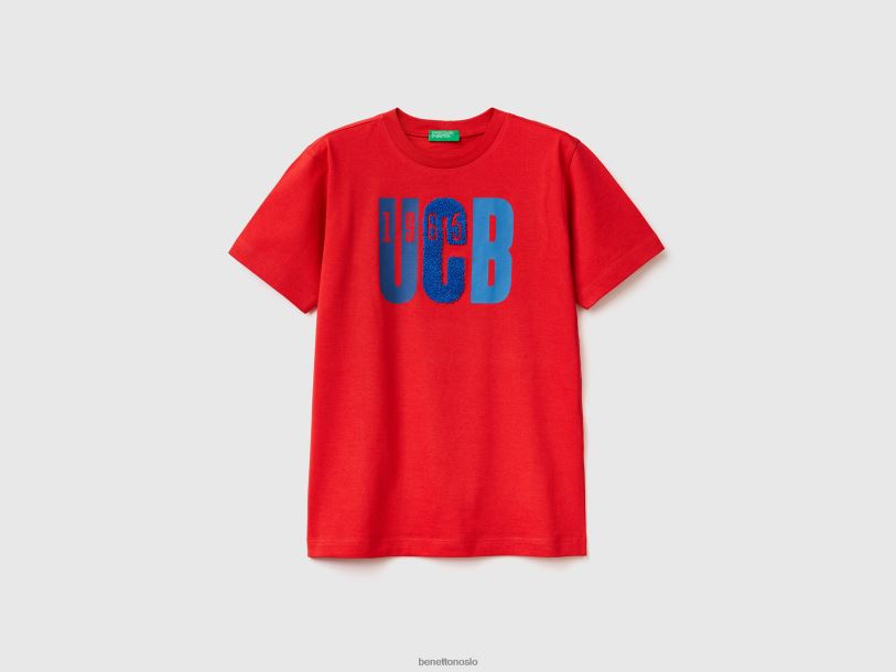 rød Benetton barn t-skjorte med trykk og broderi 20TRB1776