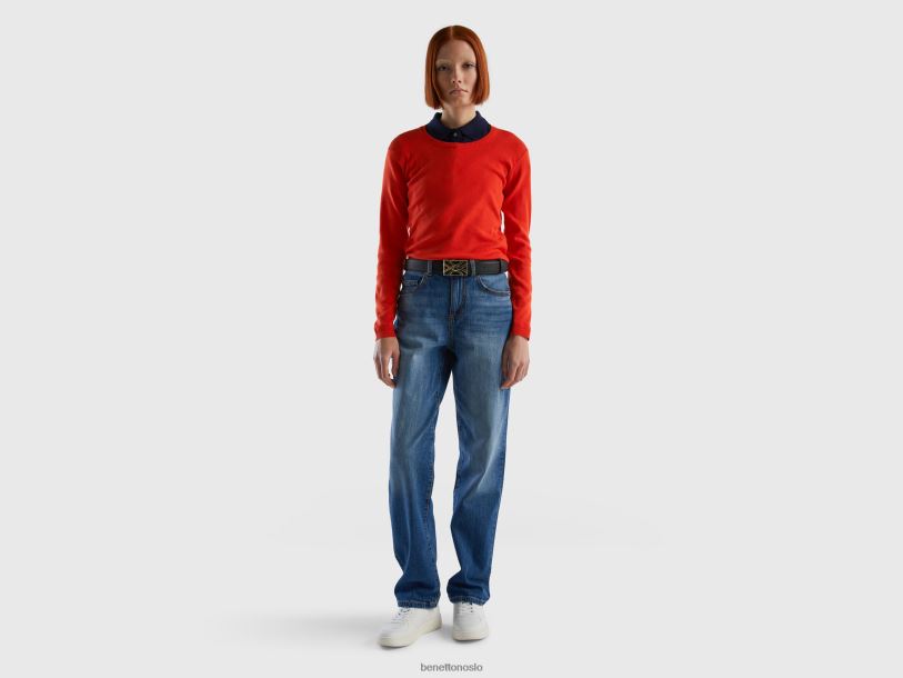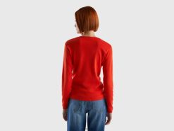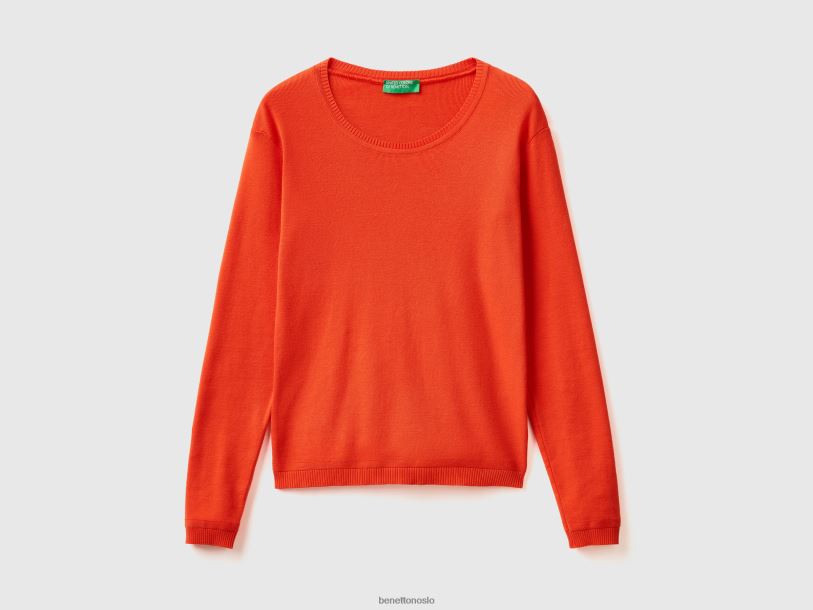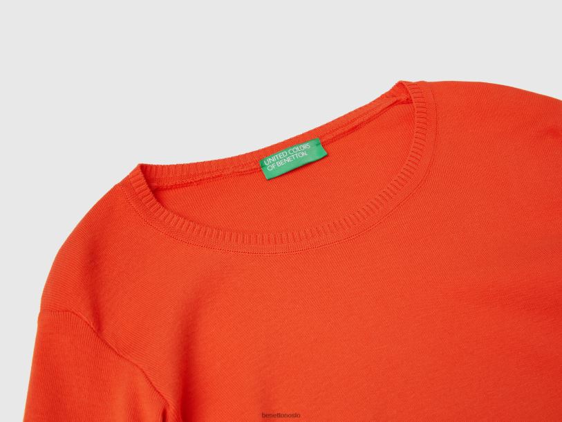 rød Benetton kvinner genser med rund hals i ren bomull 20TRB3521