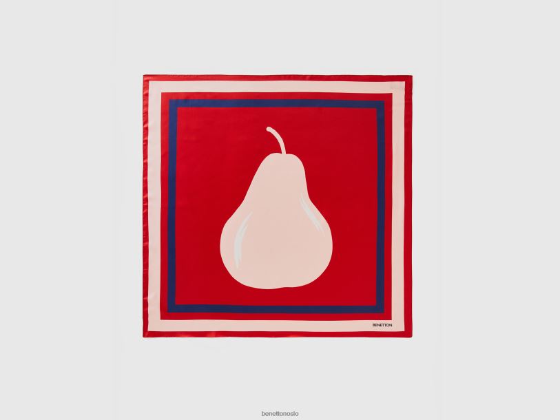 rød Benetton kvinner rød foulard med pæretrykk 20TRB755