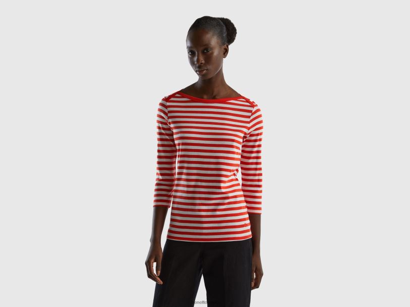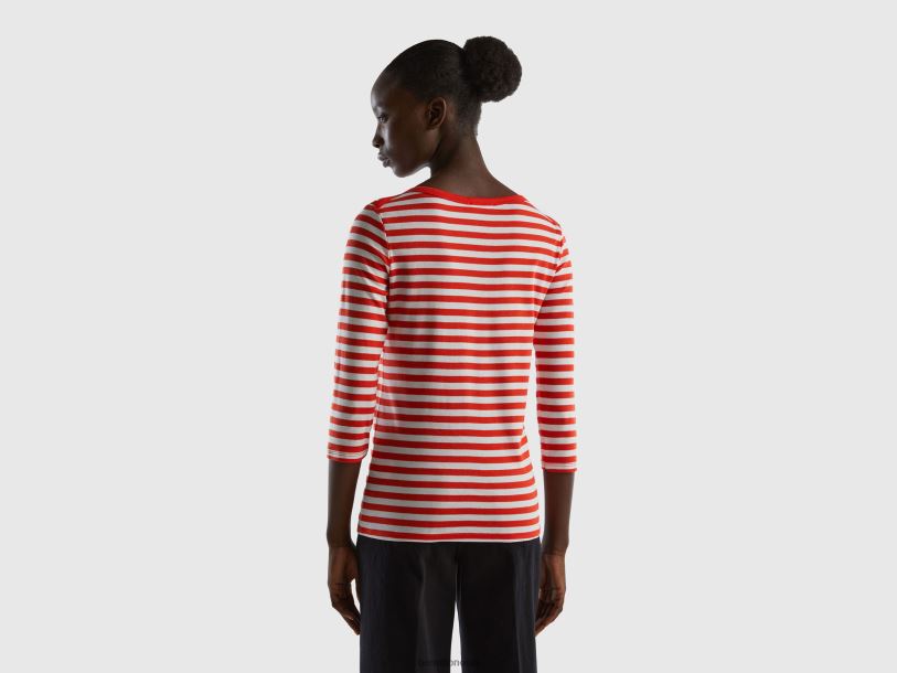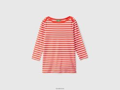 rød Benetton kvinner stripet 3/4-ermet t-skjorte i 100% bomull 20TRB405