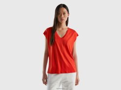 rød Benetton kvinner t-skjorte i bærekraftig stretch viskose 20TRB3825